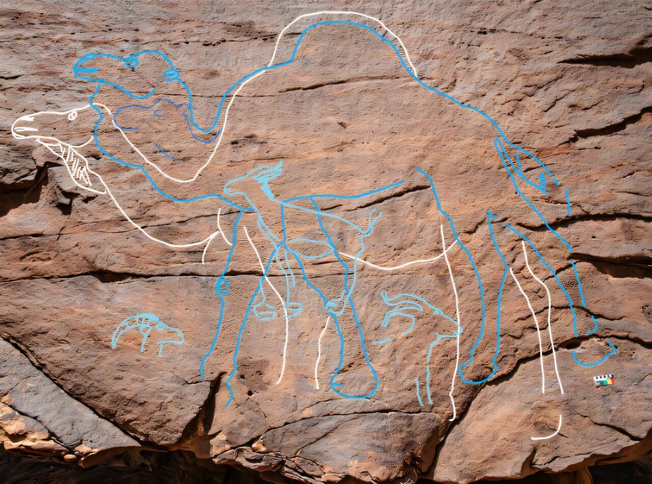 Ancient camel rock art marked water sources in Saudi Arabian Desert
