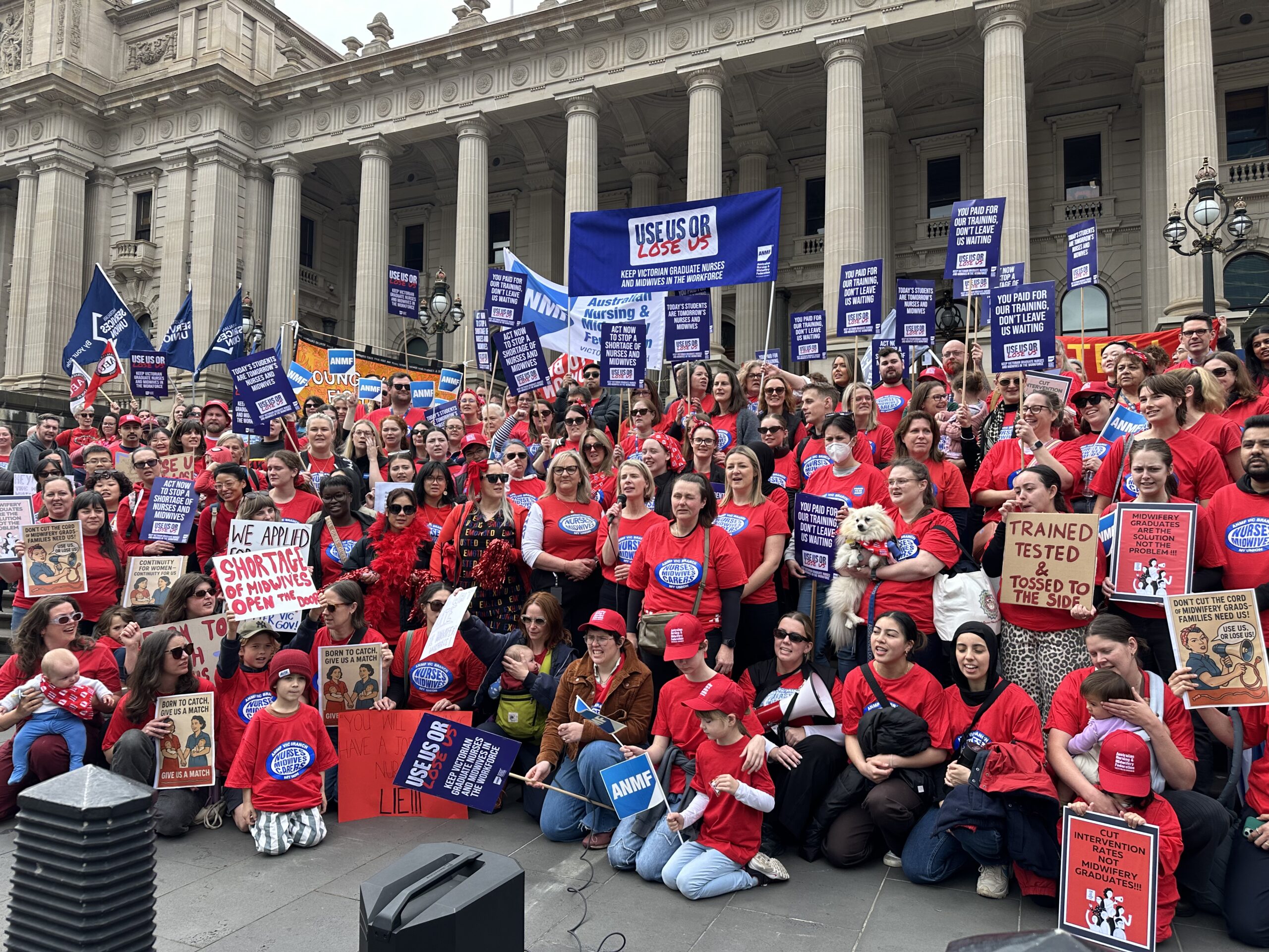 Nurses and midwives rallied in Melbourne today, warning that 2,000 graduates could miss out on placements by 2026, despite ongoing staff shortages.